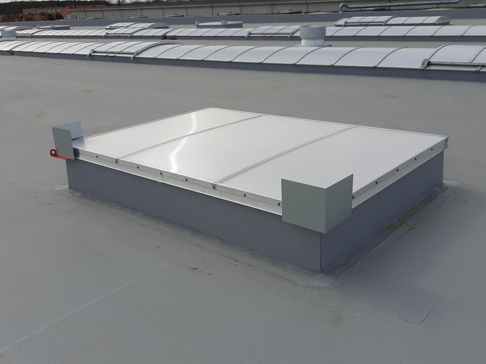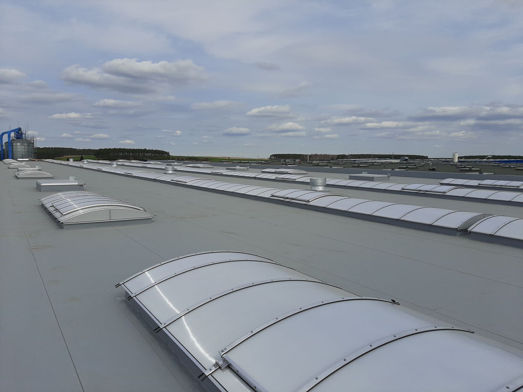 Представляємо фотографії інсталяції продукції Kera Awak на проекті IKEA Babimost. Обсяг матеріалу цього замовлення складається зі світлових смуг з прольотом 2,20 м і довжиною від 5,57 до 23,52 м. Світлові смуги були оснащені димовими клапанами розміром 2,00 х 2,50 м і активною площею димовидалення 3,60 м2 . Крім того, на даху залу встановлені точкові протидимні клапани типу AWAK PS2 розміром 2,00х2,90 та 2,00х2,50 м. Варто зазначити, що це вже черговий великий контракт з вищезгаданим інвестором та генеральним підрядником, яким є компанія CEGBUD з Вольштина. В рамках вищезгаданої інвестиції на даху існуючого залу також встановлюються світлові смуги розміром 5,88x6,00 м.
