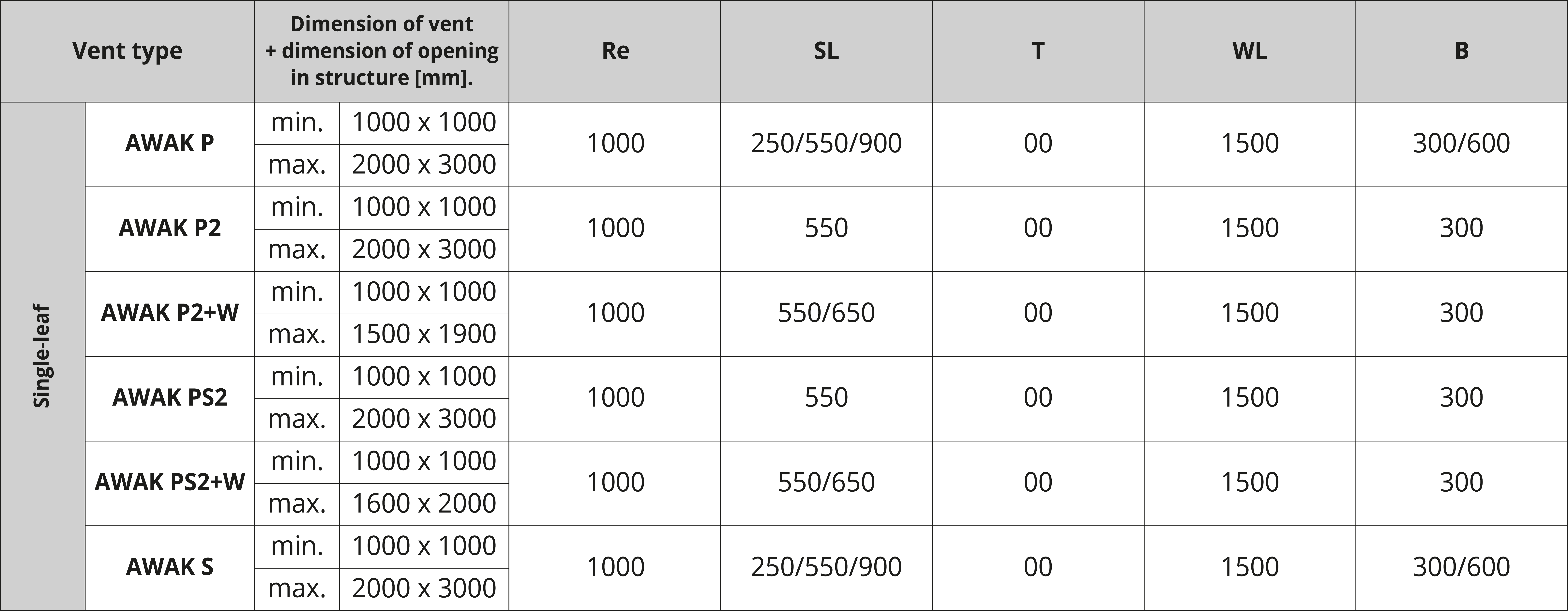 SL 250/SL 550/SL 650/SL 900 - reliable operation under load of 250 N/m2, 550 N/m2, 650 N/m2 or 900 N/m2 respectively, opening time less than 60 s.