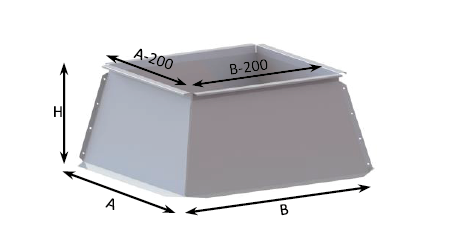 złożona z czterech segmentów z blachy stalowej ocynkowanej o grubości min. 1,25 mm. Wysokość podstawy dostosowana do konstrukcji dachu i wymagań technicznych, od 300 do 1000 mm. Standardowe wysokości: 350, 500, 750 mm. Podstawy klap dymowych wymagają konstrukcji wsporczej na całym obwodzie.