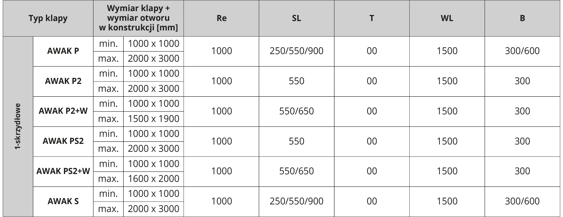 WL 1500 - odporność na obciążenie wiatrem równe 1 500 Pa, czas otwarcia poniżej 60 s;