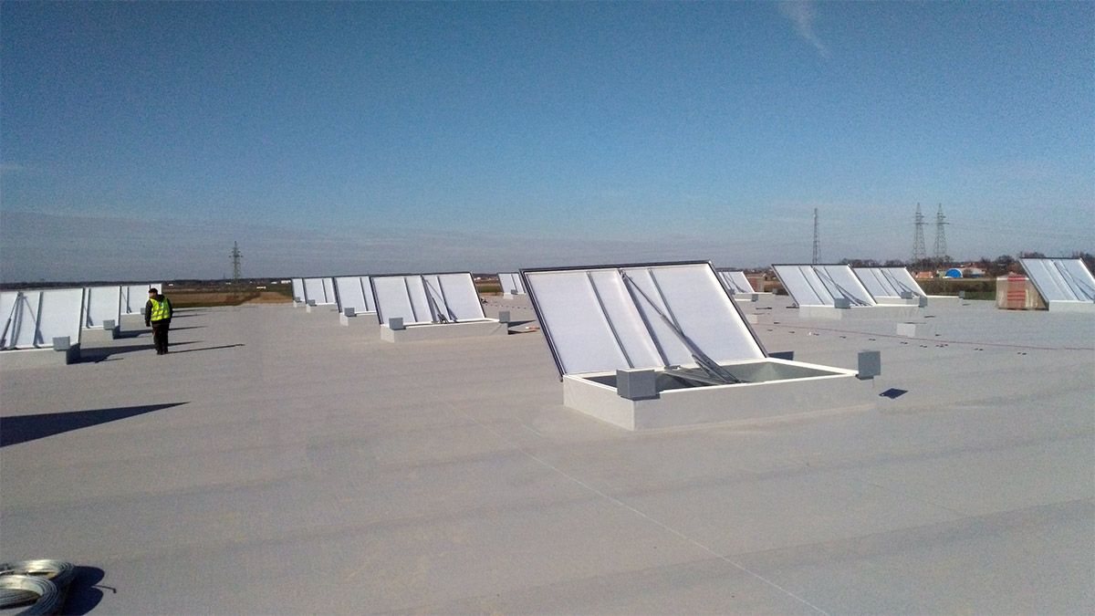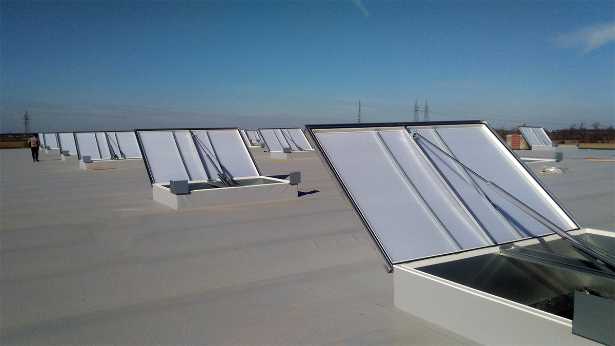 Na obiekcie Hali Magazynowej w Chociczy Małej (gmina Września) byliśmy obecni na trzech etapach inwestycji, podczas których dokonaliśmy montażu klap dymowych wraz z niezbędną instalacją.