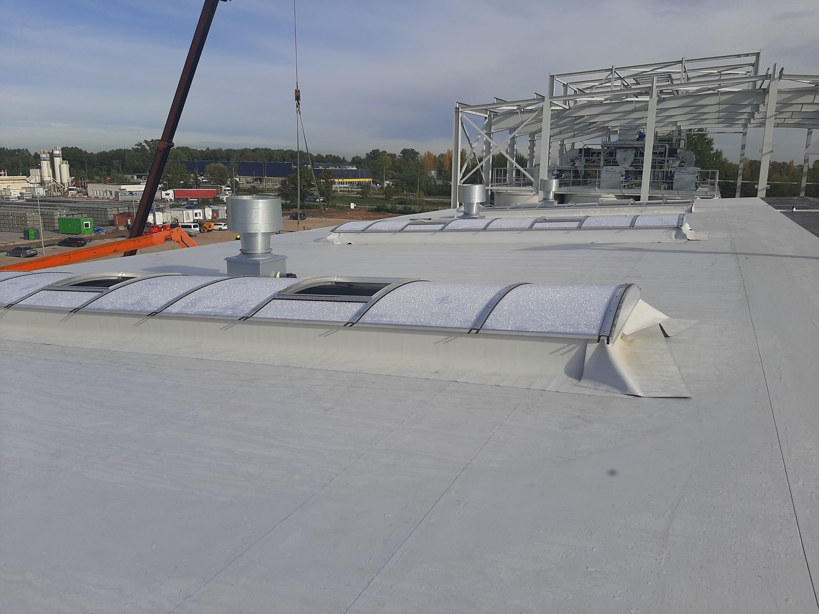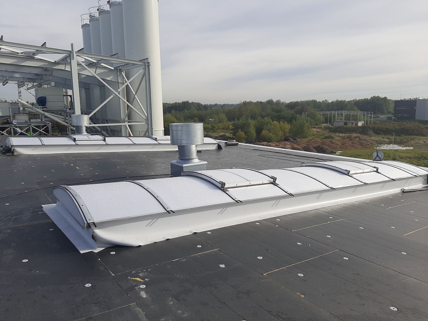 Na zlecenie Przedsiębiorstwa Budowlanego Ambit Sp. z o.o. dostarczyliśmy i zamontowaliśmy świetliki stałe oraz przewietrzające, a także pasma świetlne wyposażone w klapy przewietrzające. Jak przy większości projektów, instalacja elektryczna przewietrzania również leżała w gestii Kera Awak. Odbiorcą naszych usług został Polbruk S.A. w Legnicy.