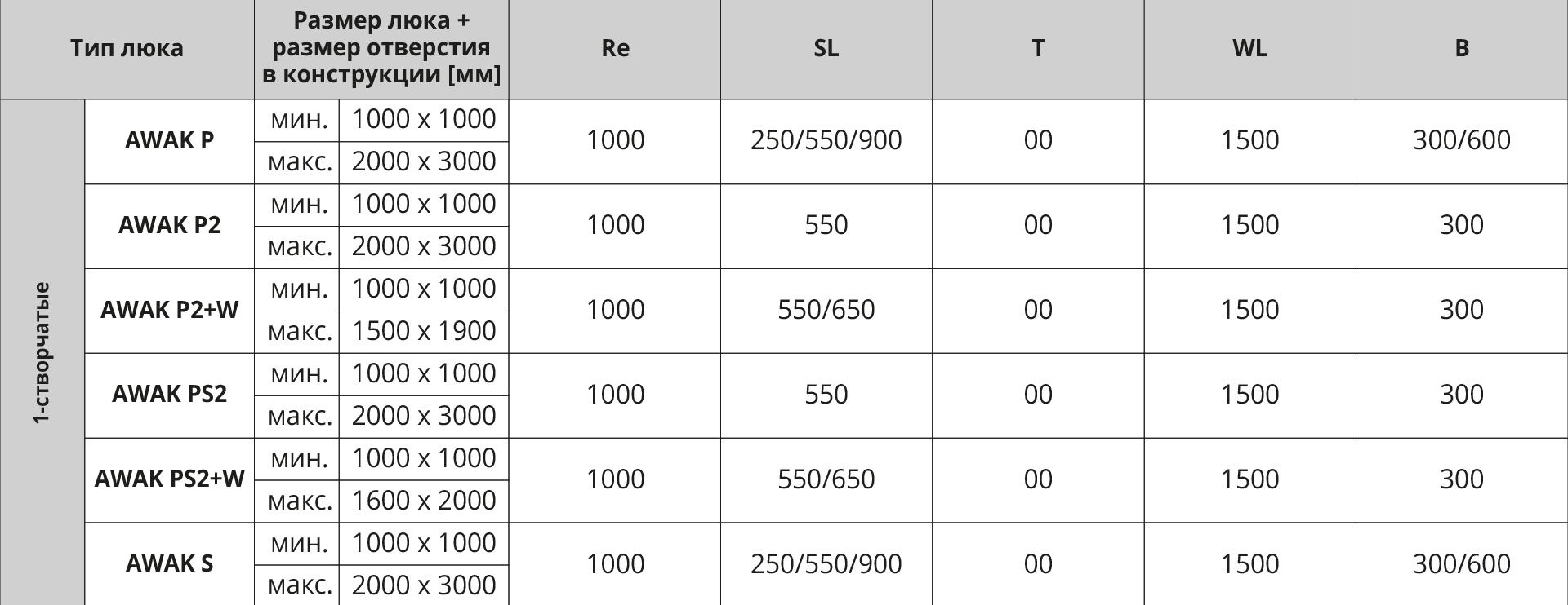 Вентиляция - на люки дополнительно устанавливается система вентиляции (двуфункциональные люки), которая обеспечивает естественную и экономичную постоянную вентиляцию помещений. Если люк оснащен электроприводом, то функция дымоудаления и вентиляции управляется одним и тем же приводом 24 В постоянного тока, а в случае пневматического управления системой устанавливается дополнительный привод с питанием 230 В переменного тока или пневматический привод. В стандартном исполнении для двустворчатого люка один привод используется для функции вентиляции (открывается одна из створок);