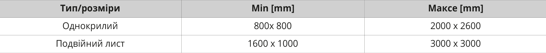 Ширина від 0,8 м до 6 м для вигнутих світлових стрічок або від 0,8 м до 4,5 м для трикутних світлових стрічок;